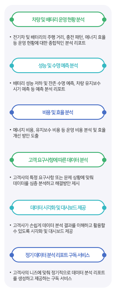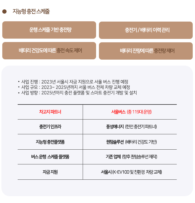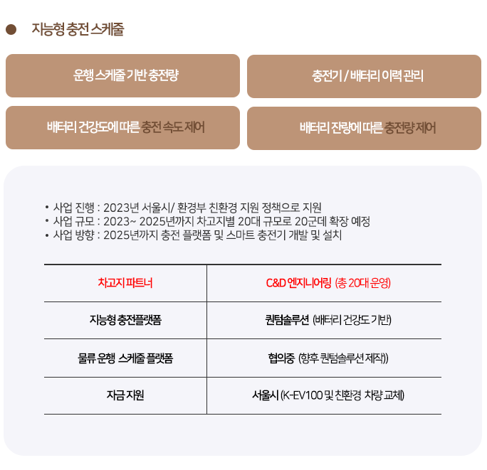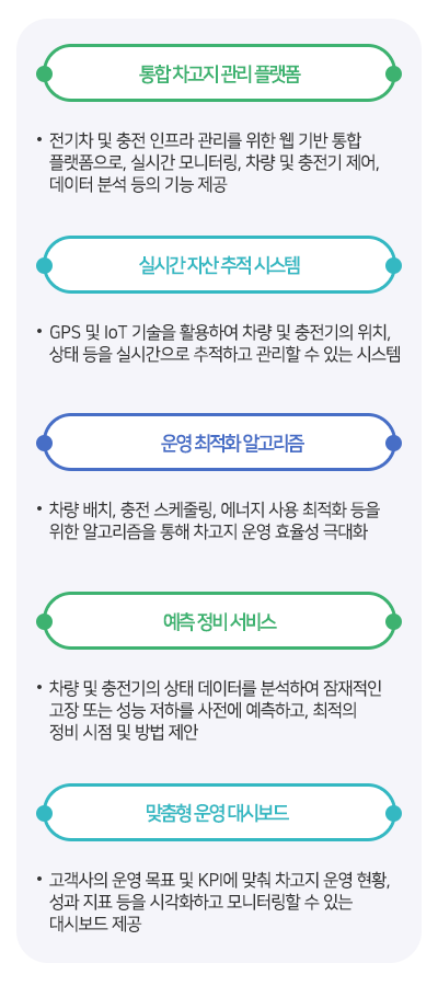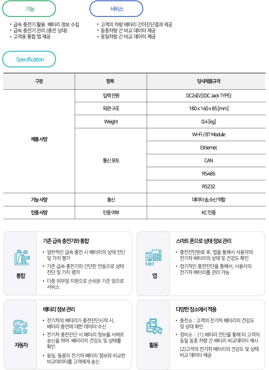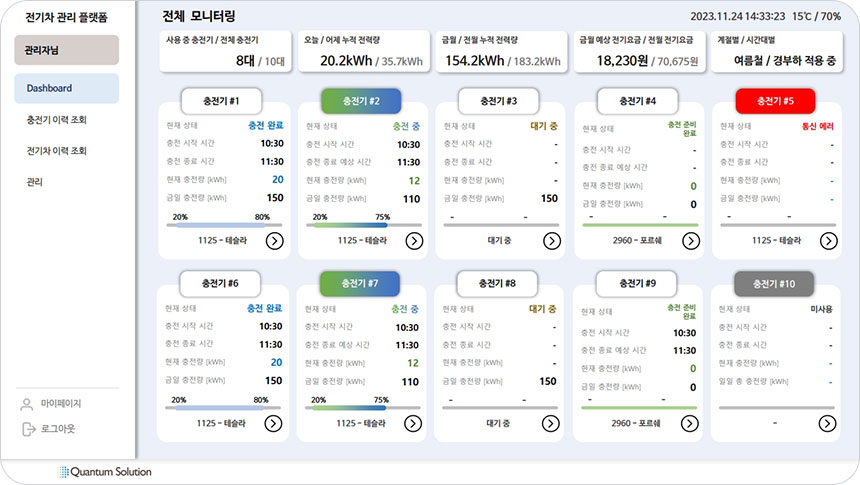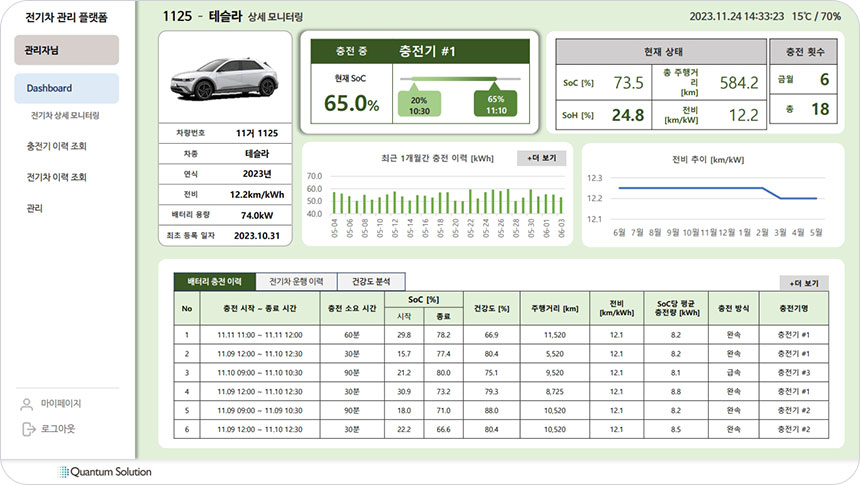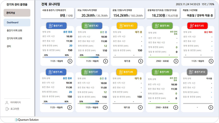솔루션입니다. 충전 스케일링, 배터리 모니터링, 차량 위치 추적 등 다양한 기능을